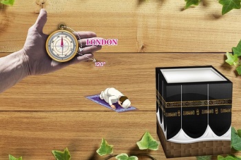 Find the Qibla angle (Qibla angle for the compass) of your city in the clockwise direction from the north(N) of the compass housing. Now you can perform your prayer in the direction of Qibla angle for the compass. For example, It is 120 degrees for London (Qibla angle for the compass). Find 120 degrees from N (North) and pray in the direction indicated by Compass.